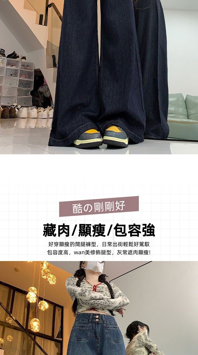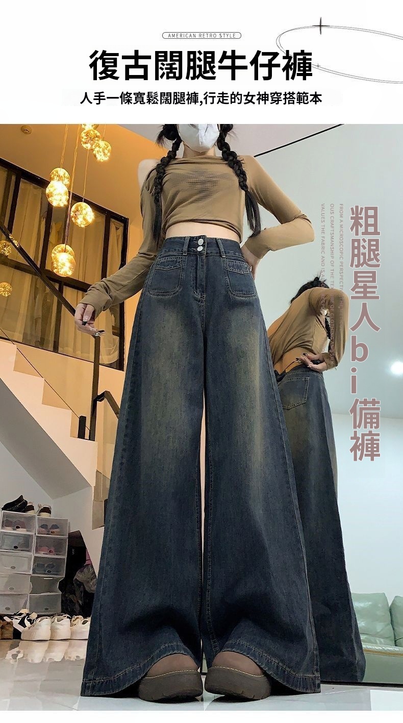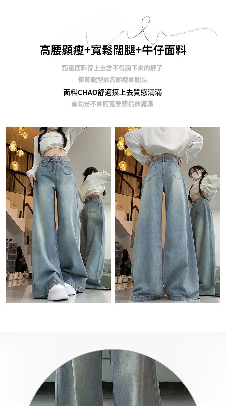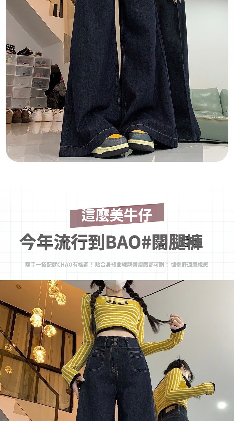 高腰顯瘦闊腿牛仔褲