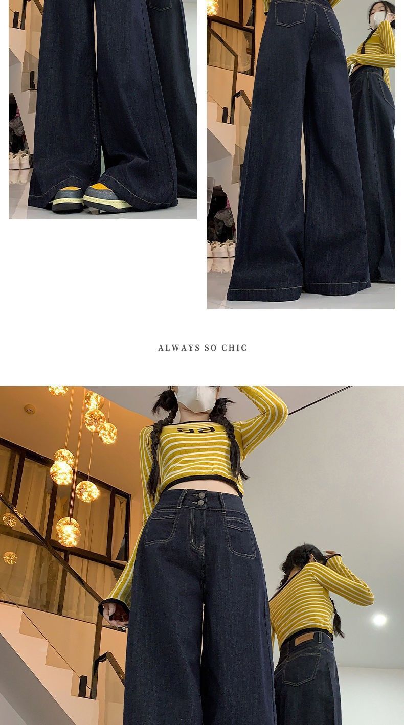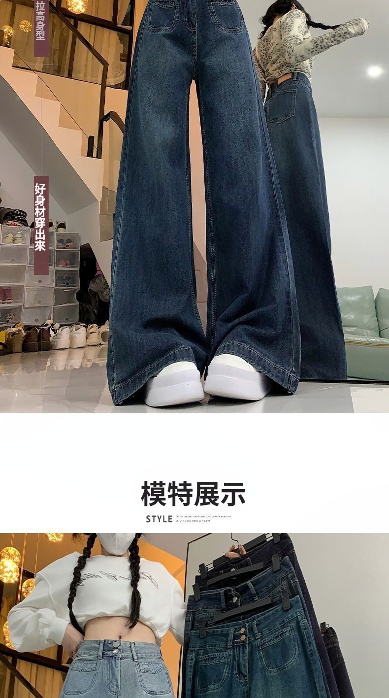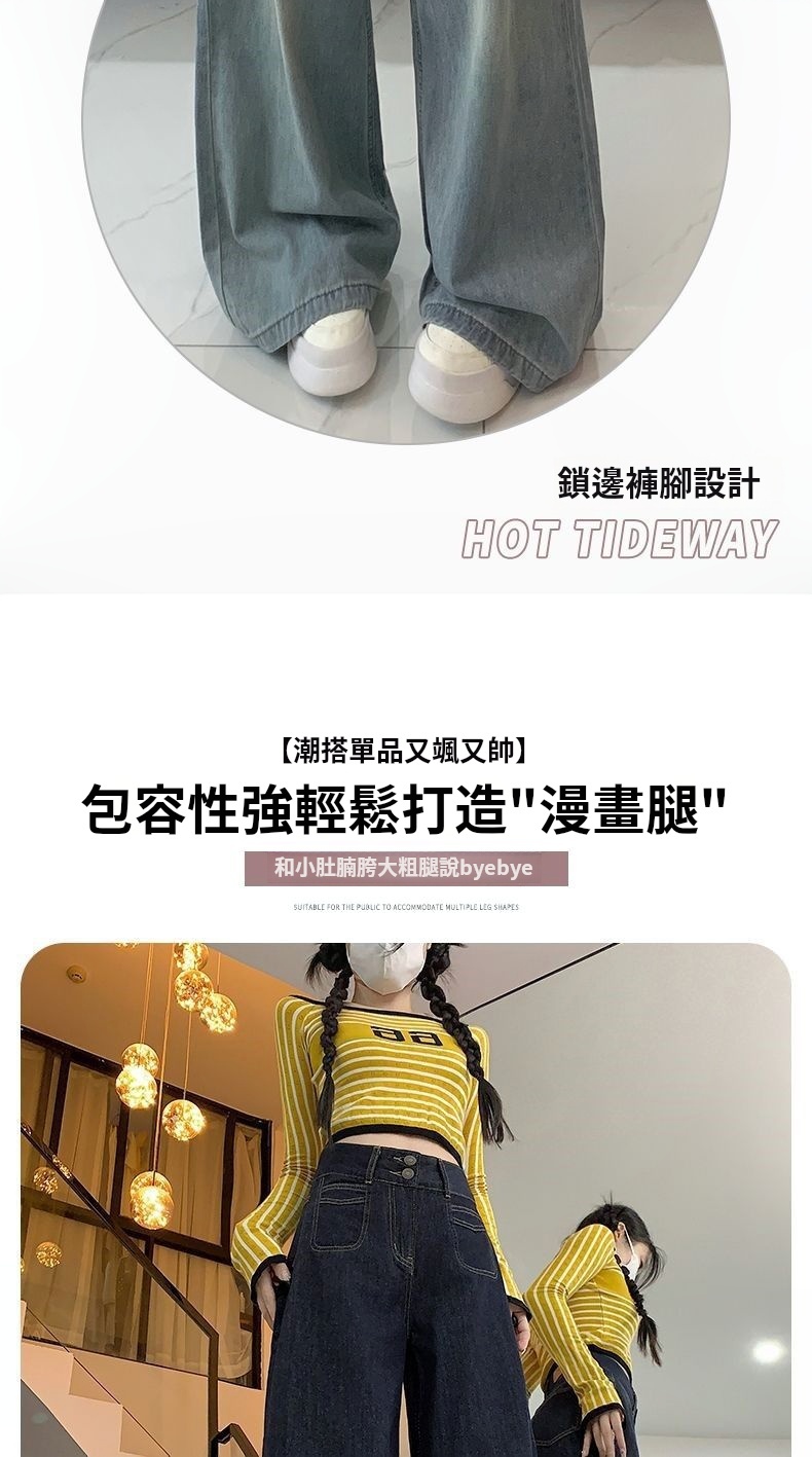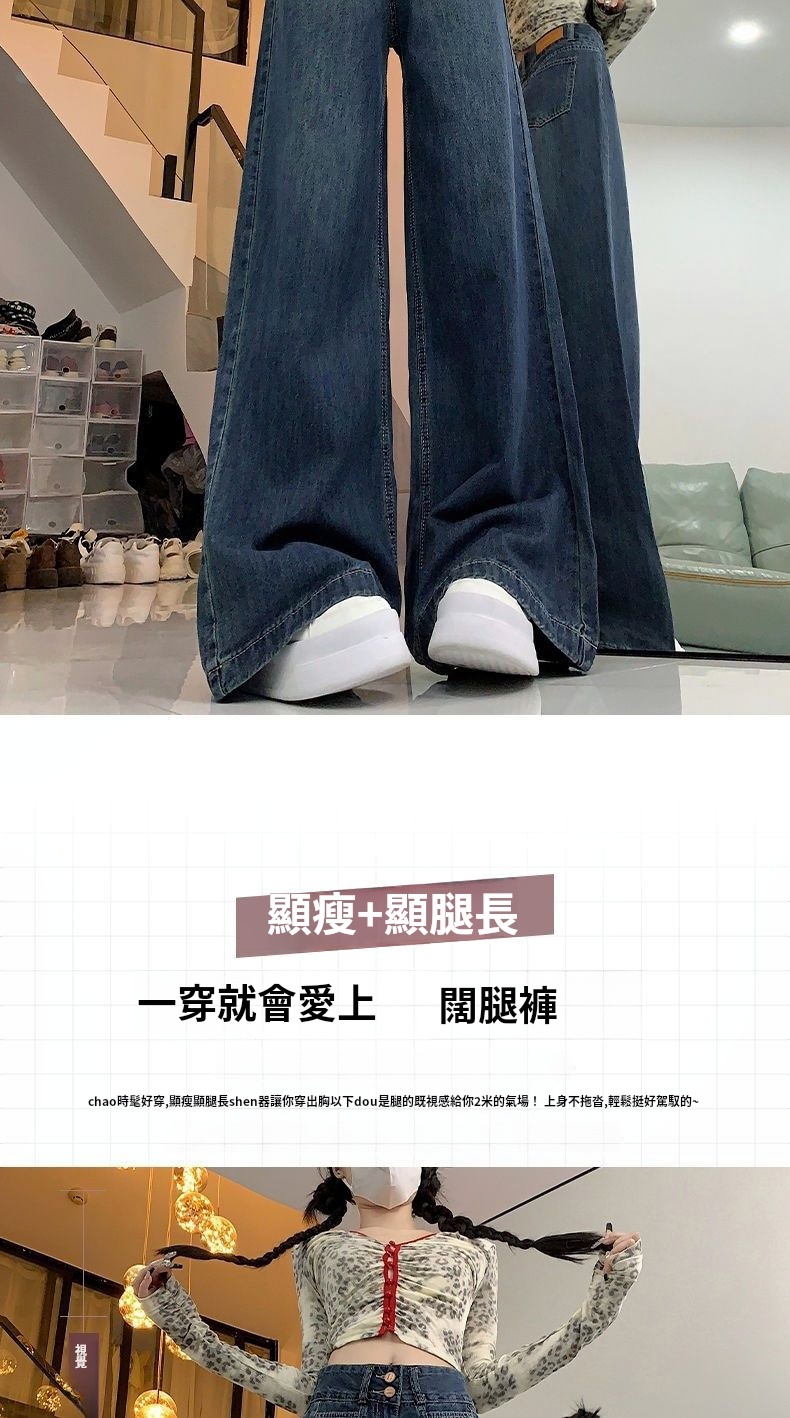 高腰顯瘦闊腿牛仔褲