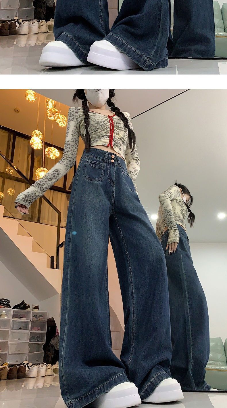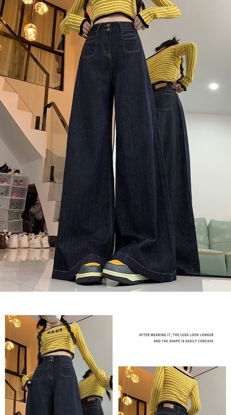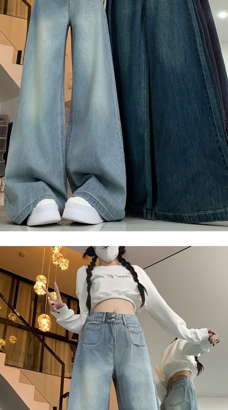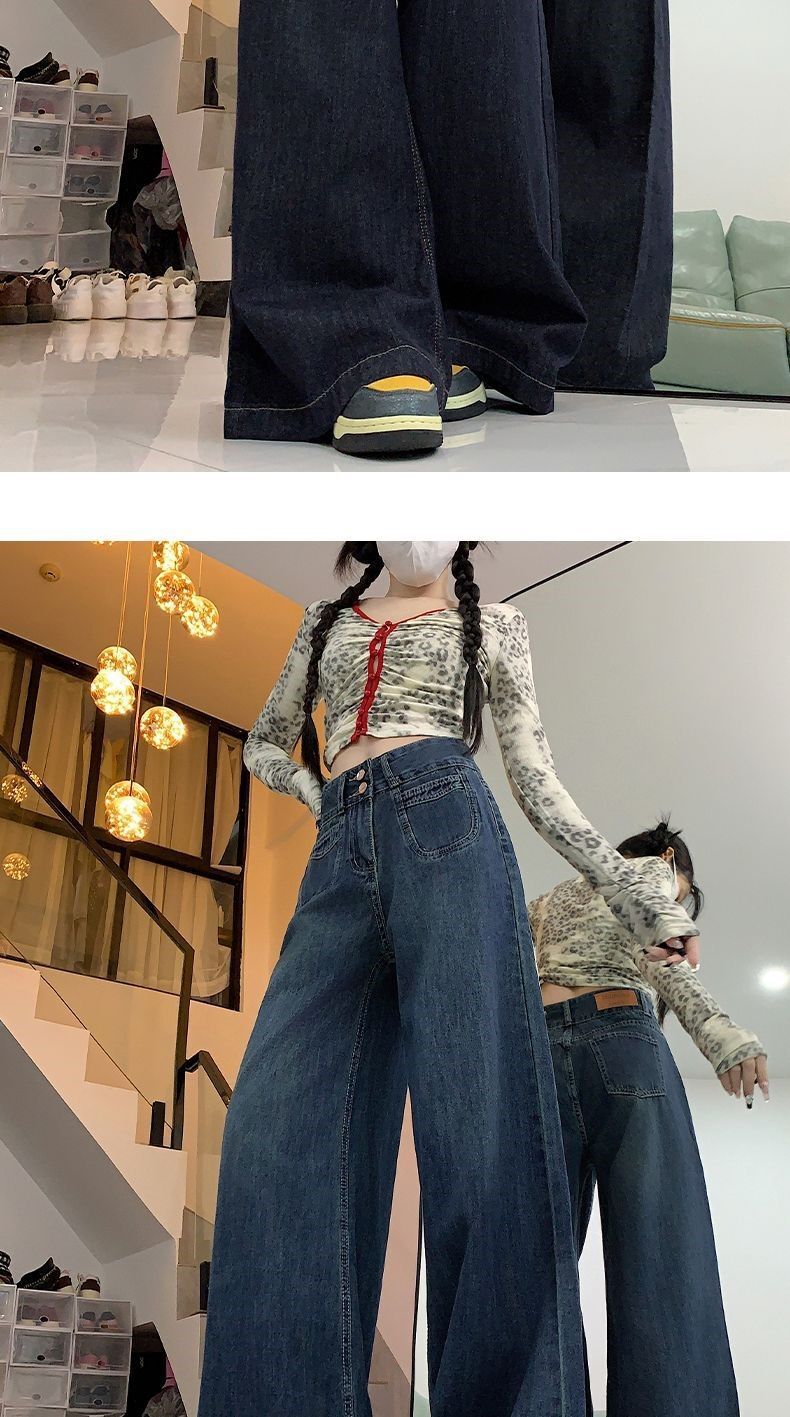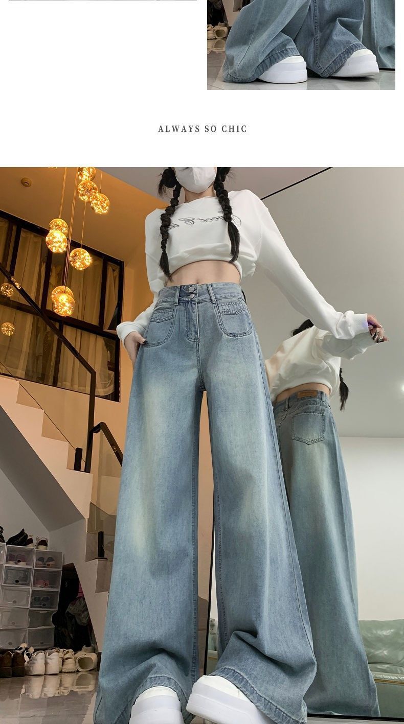 高腰顯瘦闊腿牛仔褲