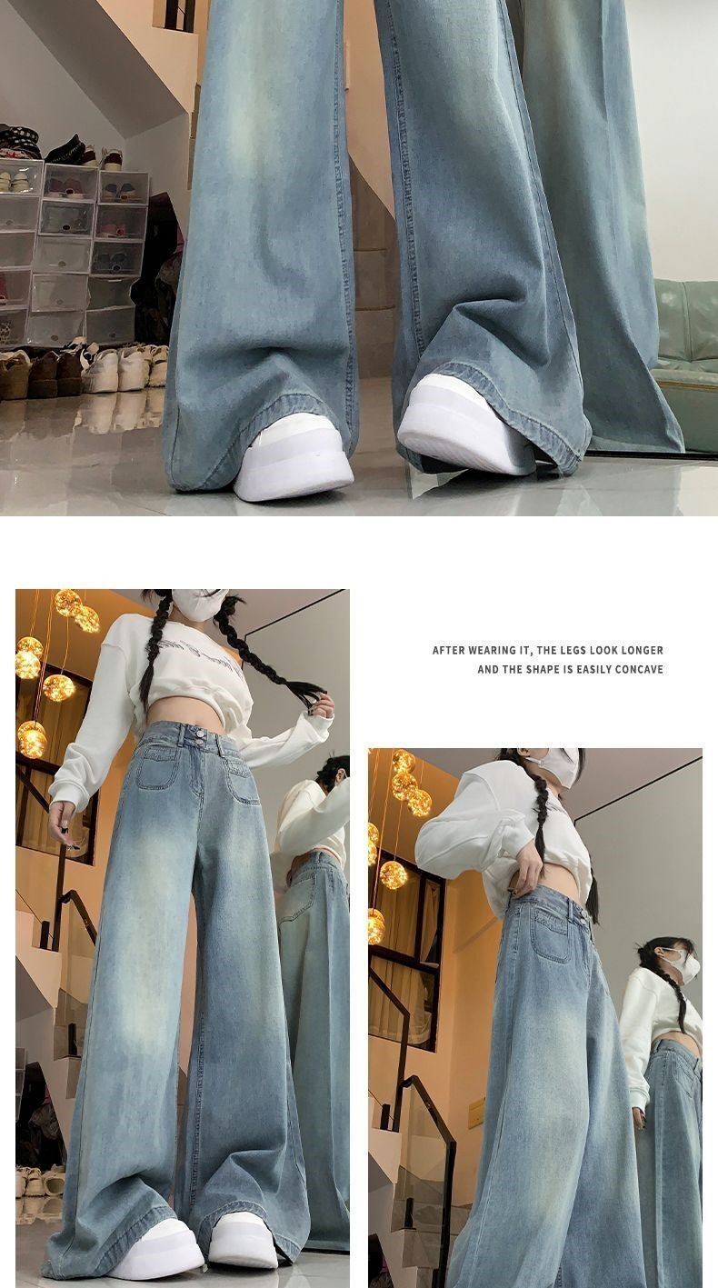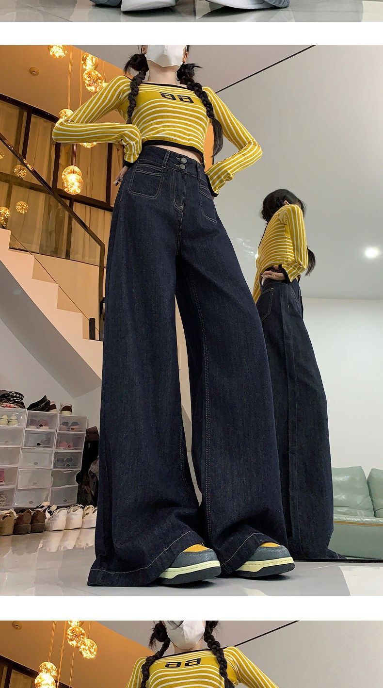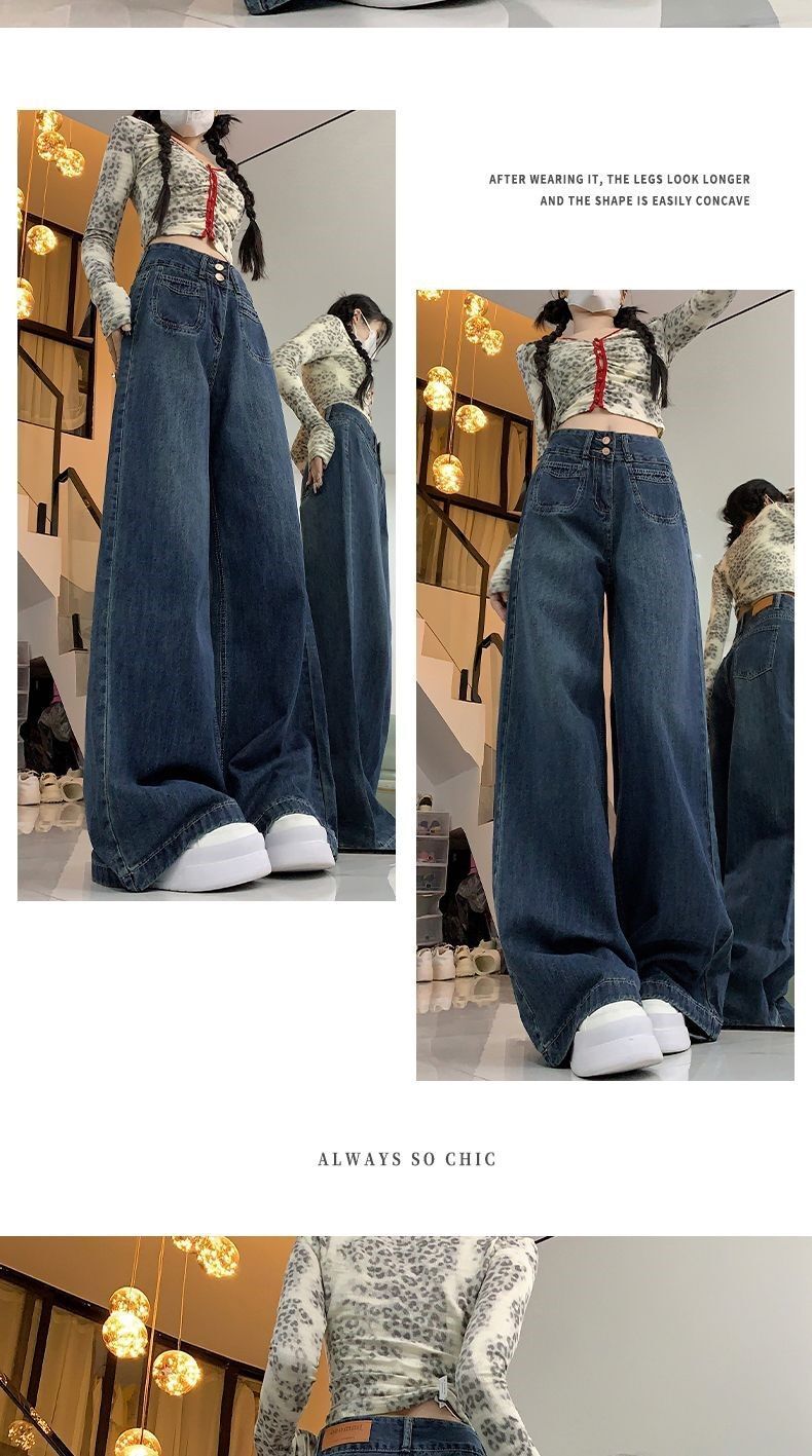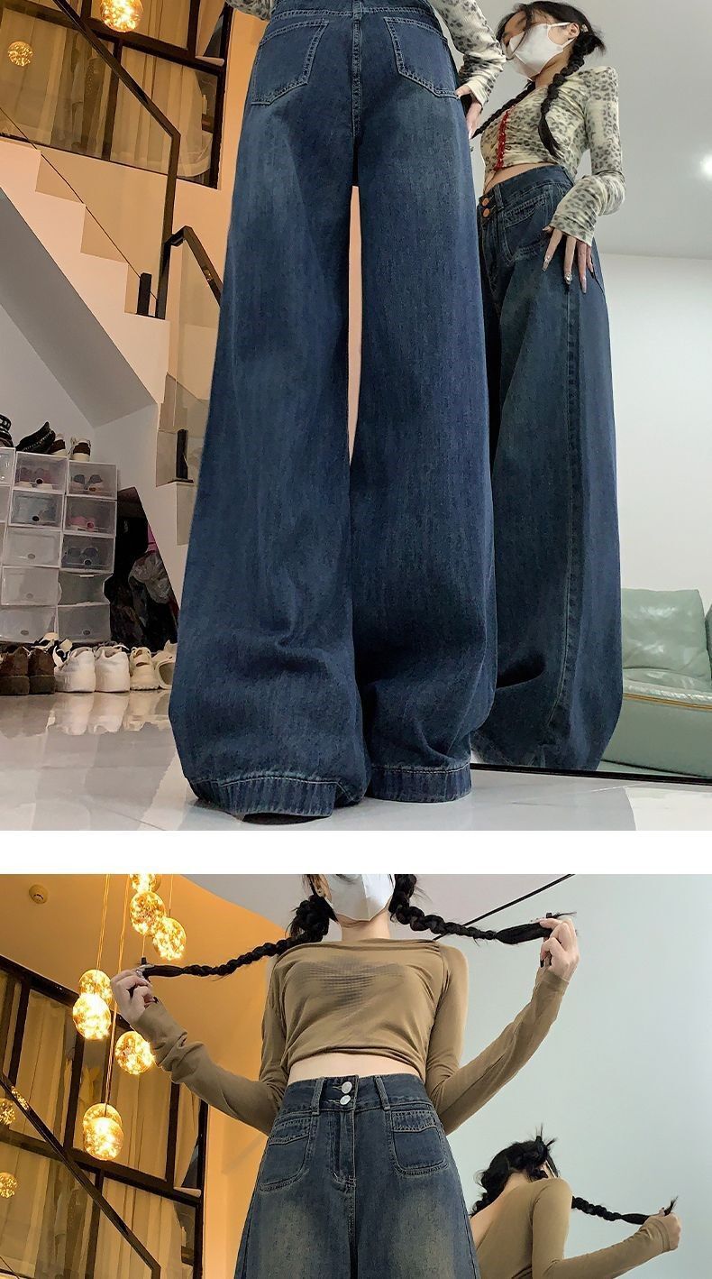 高腰顯瘦闊腿牛仔褲